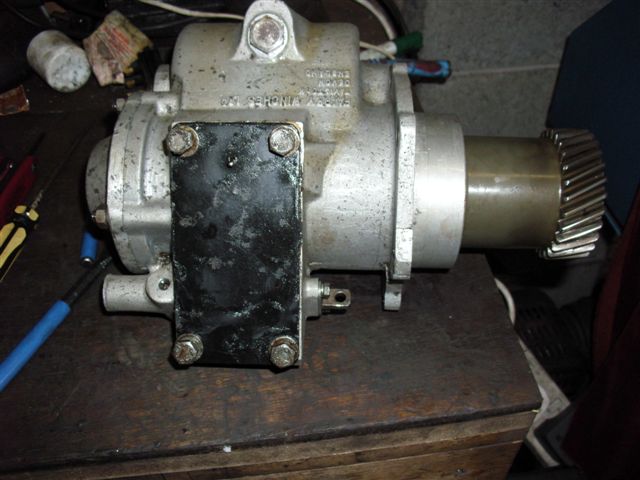 Refit the drain plug. Note the oil on the bench. I'd squirted a load of oil into the assembly through the large aperture, and turned the input and output shafts to get oil onto all the major surfaces.